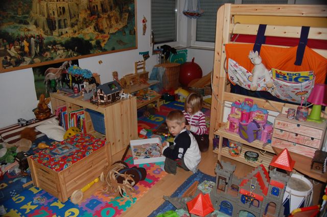 Dana and Brian can already play by themselves without much supervision from anybody else. Here they are in their room: