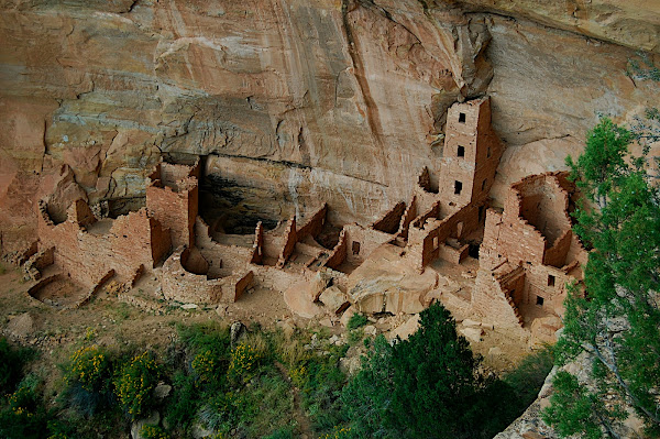 Mesa Verde NP (green table in Spanish) protects over 4'000 archeological sites, including 600 cliff dwellings. It was inhabited by the Ancestral Pueblo people for over 700 years, from A.D. 550 to A.D. 1300. For the first six centuries, the Puebloans primarily lived on the mesa tops and only during the final 75 to 100 years they constructed and lived in the cliff dwellings for which Mesa Verde is now famous.