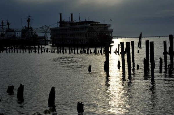 Columbia River enters the ocean in Astoria, a lovely little town located in Oregon, just next to the boarder with Washington. It is seventh longest and by volume it is the fourth largest river in the US. Its delta is definitely very impressive and it looks more like a big lake or ocean, than a river. It must also be pretty deep as there were many large transporter ships cruising on it. We got to Astoria around sundown, which added even more charm to the ships on the river: